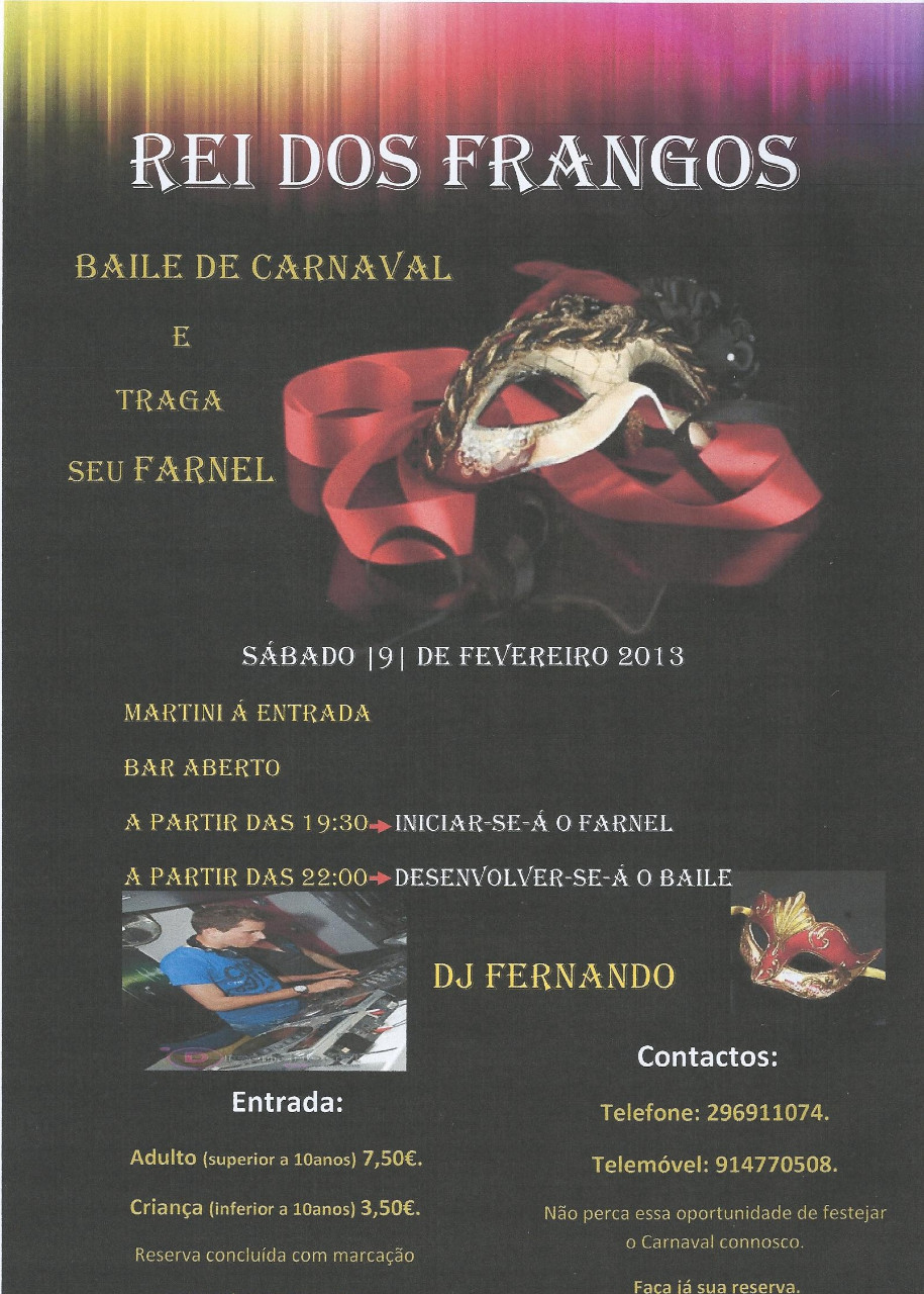 Página inicial > CARNAVAL ----- Traga sua fantasia e seu Farnel e junte se connosco no restaurante Solar "O Rei dos Frangos" Faça já sua reserva.